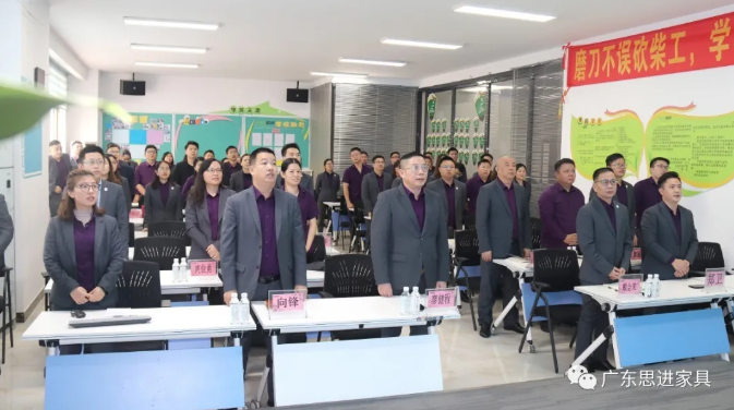 廖董事長作為思進家具戰略定位第一人,從為員工制定個人目標“三年買車、五年買房”到今天的“營銷人員成長晉升層級”,他始終不忘堅持思進核心價值觀:支持員工實現個人價值,員工助推企業持續發展,我們共同承擔社會責任,實現國富民強。最后廖董事長期望思進品牌涌現更多的戰斗力強、忠誠度高的優秀人才,與思進共同成長!